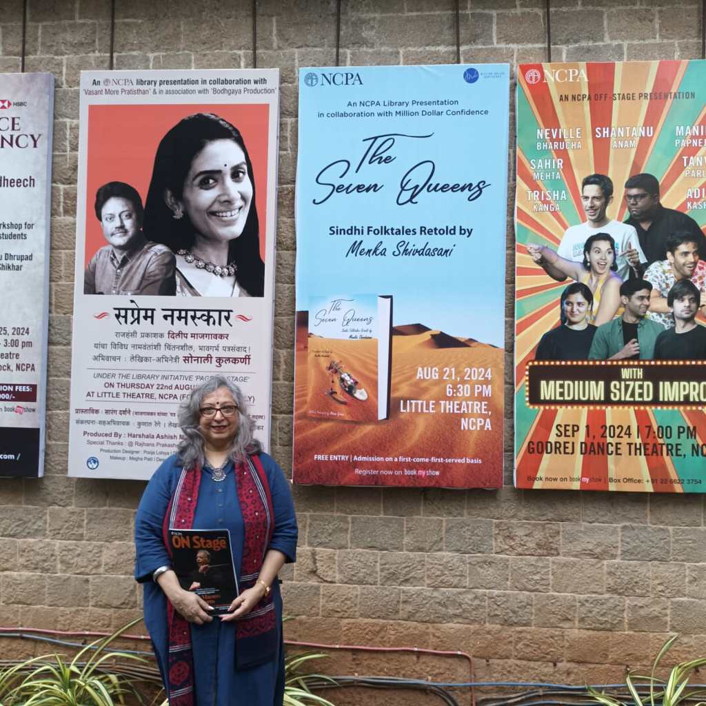 The Seven Queens: Sindhi Folktales Retold in English Verse by Menka Shivdasani saw a spectacular launch at the National Centre for the Performing Arts in Mumbai on August 21, 2024. The event was an NCPA Library presentation under the ‘Page-to-Stage’ initiative. The book, which also features translations into Sindhi by Barkha Khushalani, has been published by Black Eagle Books (USA, India) and is available globally.