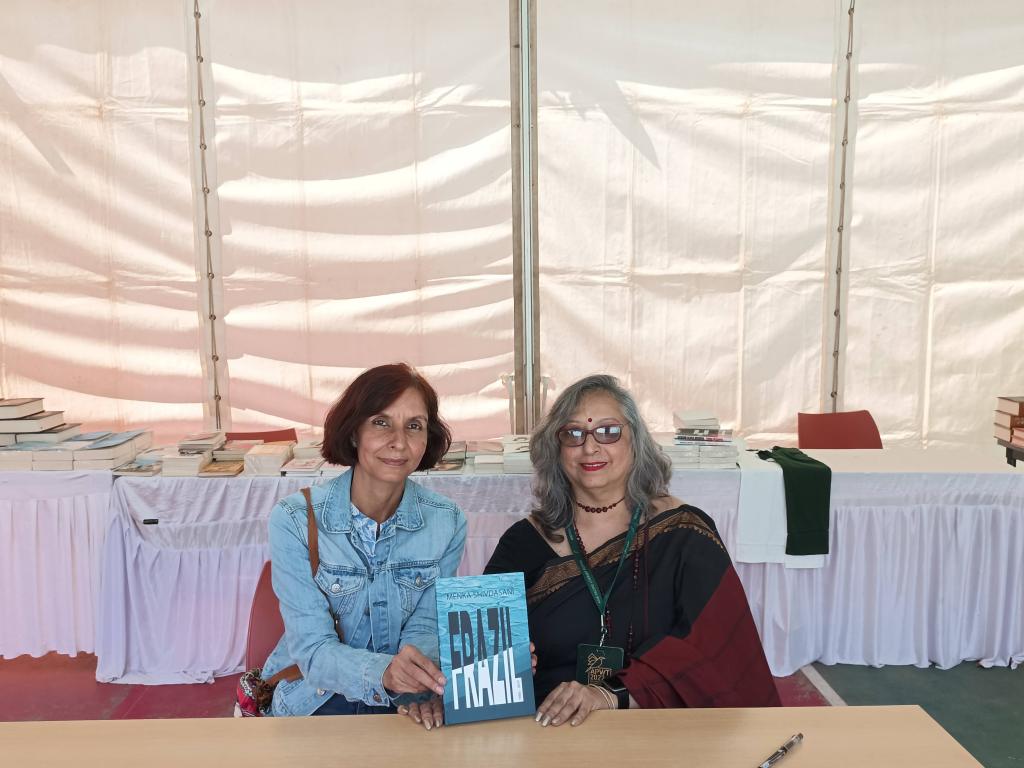 I also hosted another fascinating session titled ‘Siren Songs: History, Heritage And Myth’ at short notice since the moderator could not make it. Australian novelist and spiritual voyager, Helen Burns discussed her new book, ‘Andal’s Garden’ about the only 8th-century Tamil woman poet/ saint. Shreekumar Varma, author, playwright, newspaper columnist and poet, and Shubhrangshu Roy, who has written a speculative fiction based on wisdom from the