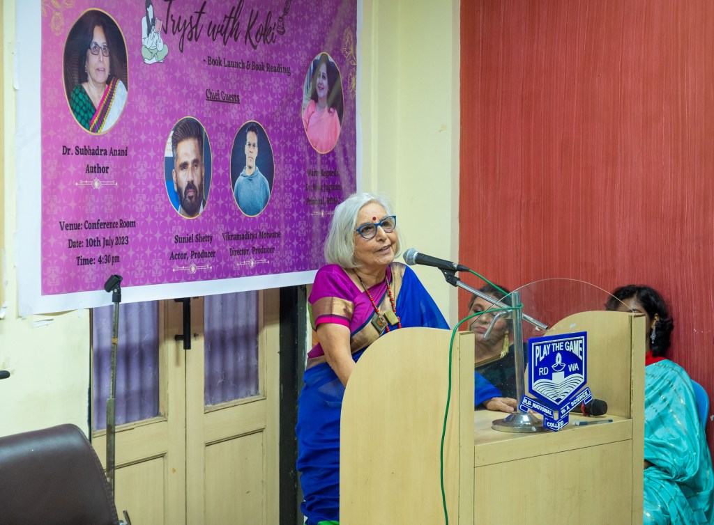 Dr Subhadra Anand’s debut novel, Tryst with Koki, saw a spectacular launch, first at Crossword Bookstore in Mumbai, and then at the R.D. National College, Bandra. I had the pleasure of conducting a conversation with her at the National College at the event on July 10, 2023.